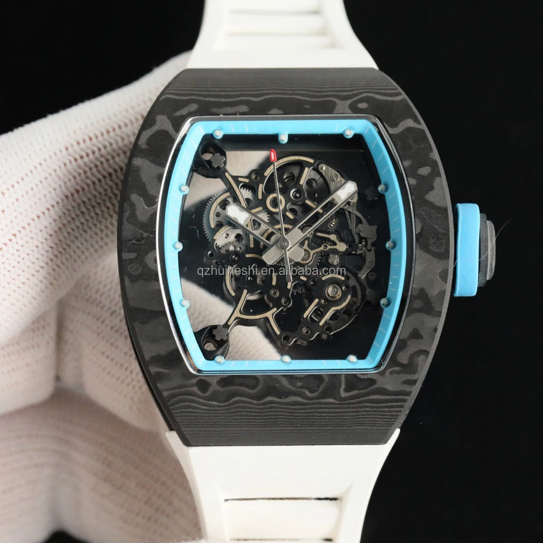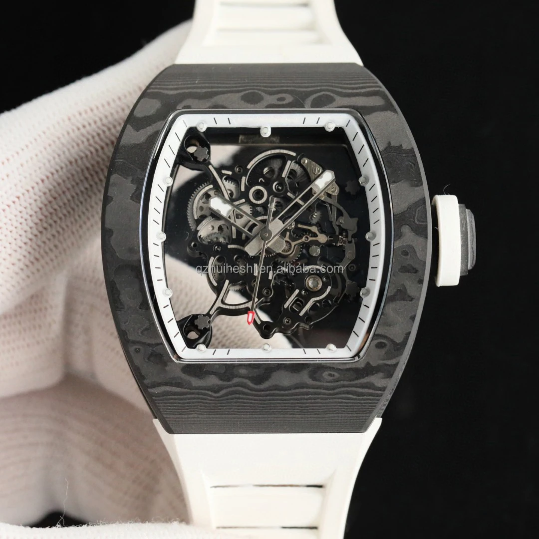 Custom-Made Men's Carbon Fiber Mechanical Watch Luxurious Waterproof Casual Design Oval Case Rubber Band (20mm Glass Pointer