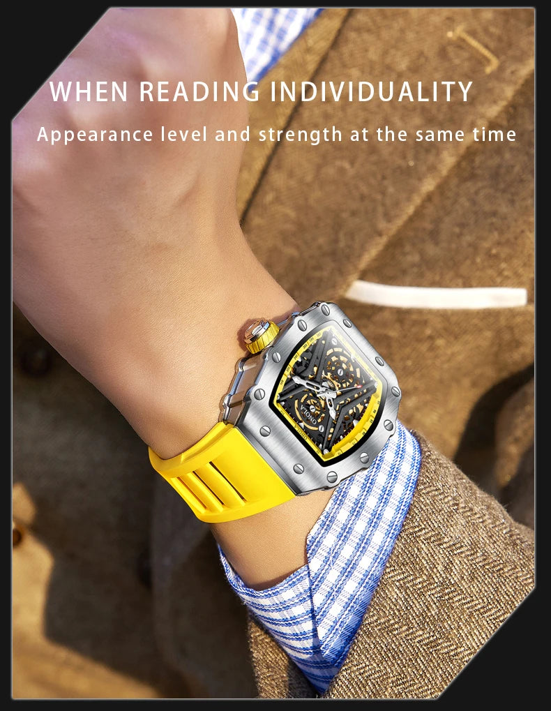 ONOLA Original Design Watch Mechanic Watches Men Top Luxury Fashion Casual Luminous Square Skeleton Clock Men Automatic Watch